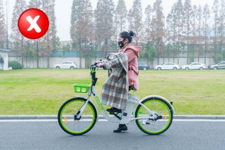 很多人在冬天會(huì)選擇沒(méi)過(guò)膝蓋的大衣或羽絨服,但如果選擇騎自行車(chē)出行的話,需露出膝蓋,一方面可以讓自己更靈活的進(jìn)行騎行,另一方面可以在出現(xiàn)突發(fā)狀況時(shí),及時(shí)雙腳著地穩(wěn)住車(chē)身。
