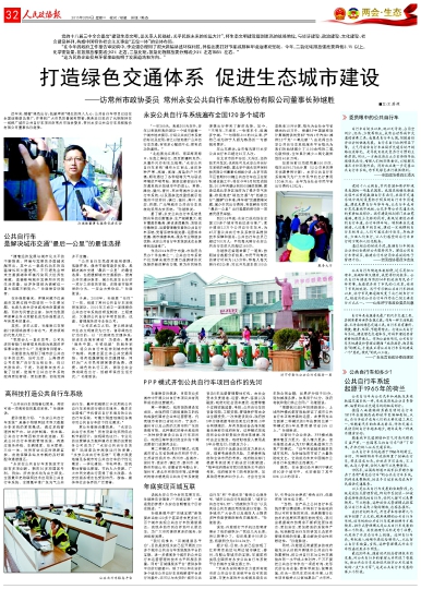 打造綠色交通體系 促進(jìn)生態(tài)城市建設(shè) ——訪(fǎng)常州市政協(xié)委員常州永安公共自行車(chē)系統(tǒng)股份有限公司董事長(zhǎng)孫繼勝