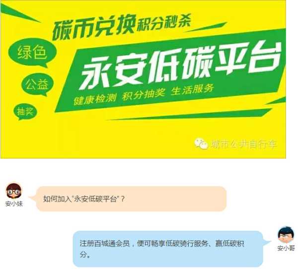 ”存入您的低碳銀行賬戶。 “百城通”會(huì)員的碳幣,即將實(shí)現(xiàn)在永安低碳平臺(tái)上進(jìn)行碳幣交易,兌換相應(yīng)的商品,同時(shí)也可進(jìn)行“