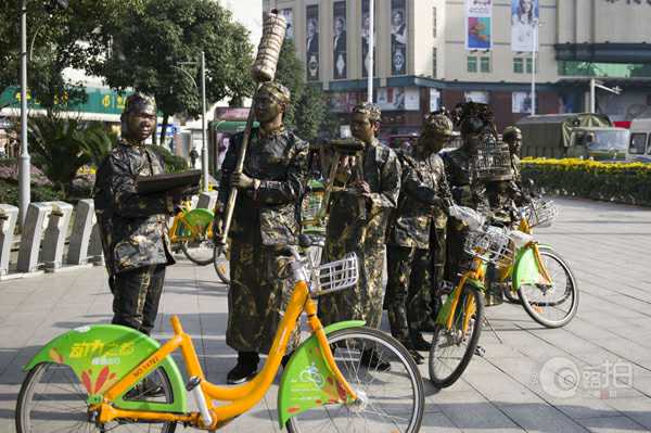 他們是株洲職工大學(xué)(工業(yè)學(xué)校)大一的學(xué)生,希望通過這些古代造型與現(xiàn)代自行車的對(duì)比,讓大家注意到愛護(hù)公共財(cái)物也是學(xué)習(xí)雷鋒。