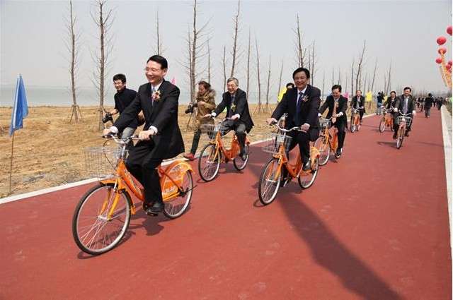 環(huán)太湖風景路建設啟動儀式 兩省領導體驗公共自行車!