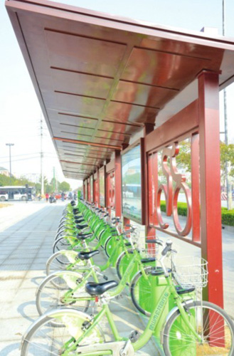 昆山公共自行車(chē)站點(diǎn)有了遮雨棚