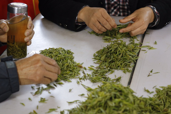 三月底剛好是春茶采摘季節(jié),剛好遇見茶農(nóng)采茶,采摘的是一芽一葉,選茶,