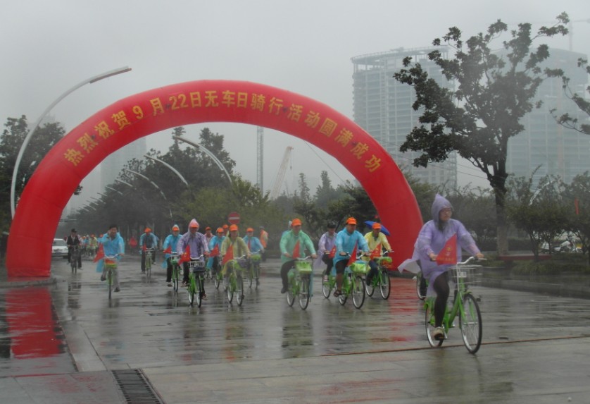 活動人員沿現(xiàn)代大道、星湖街、右岸街騎行,宣傳無車日、倡導(dǎo)綠色出行的理念