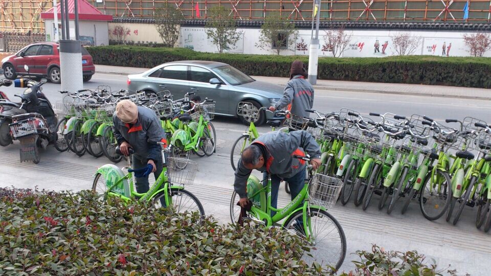 我們公司經(jīng)過商討決定,利用冬季3個(gè)月時(shí)間,全體管理層全部出動(dòng),分組分片,并召集部分現(xiàn)場(chǎng)工作人員,進(jìn)行集中維護(hù),主要包括自行車的擋板車貼更換,自行車的保潔,修補(bǔ)綠漆及車樁維護(hù)等工作。