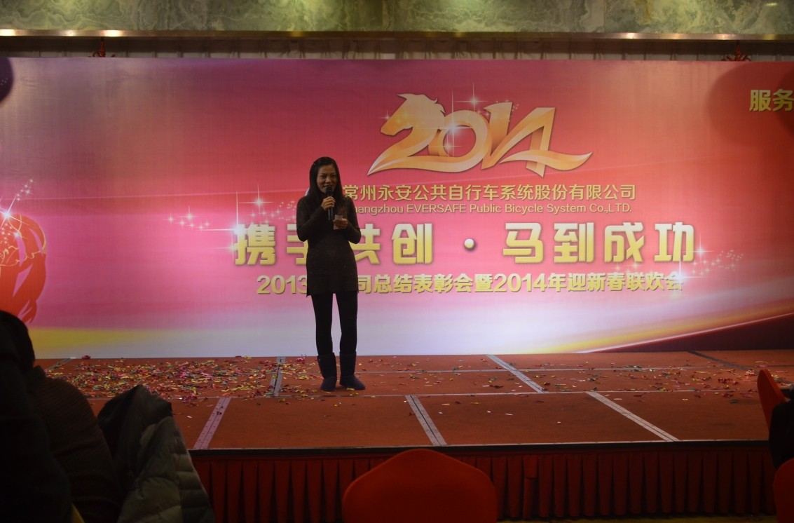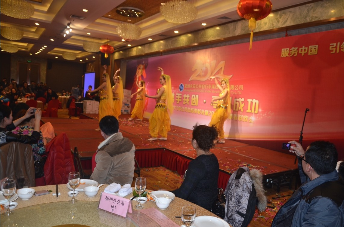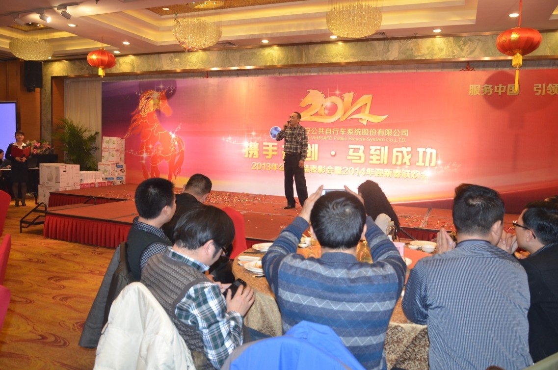 窗外寒風嗖嗖,我們的聯(lián)歡會現(xiàn)場卻是一片春意濃濃。全體同事歡聚一堂,興致頗高,年會融入了輕松、和諧的聯(lián)歡氣氛,以年會及娛樂為一體,使整堂年會充滿了愉快溫馨。在會上,公共自行車公司董事長發(fā)表了熱情洋溢的講話,為我們描繪了振奮人心的發(fā)展藍圖。并為2013年的優(yōu)秀部門及優(yōu)秀員工頒發(fā)了榮譽證書。接下來的公司聯(lián)歡演出更是熱鬧非凡,公司員工載歌載舞,小品、抽獎、互動游戲?qū)映霾桓F,特別是蘇州分公司優(yōu)秀員工代表唱的一首《甜蜜蜜》更是暖入人心。聯(lián)歡會現(xiàn)場歡聲笑語響成一片。