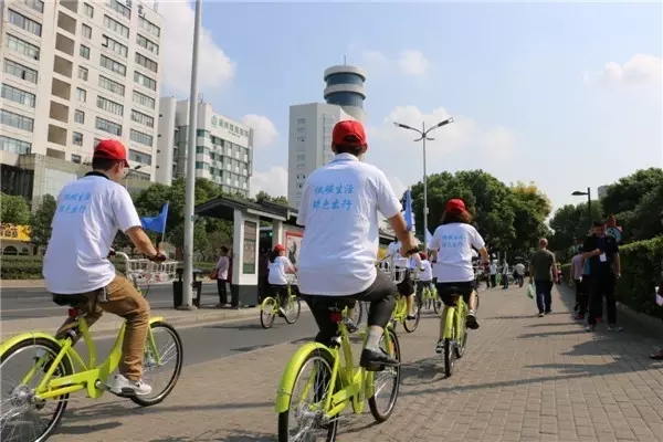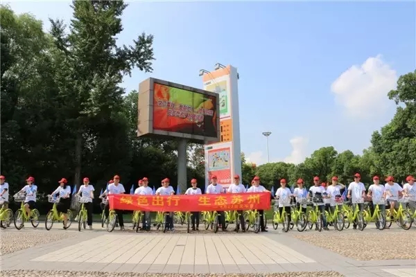 他們是蘇州市容市政系統(tǒng)青年志愿者們,今天是世界無車日,蘇州市市區(qū)道路停車管理所開展了公共自行車騎行宣傳活動,為宣傳綠色出行添磚加瓦。