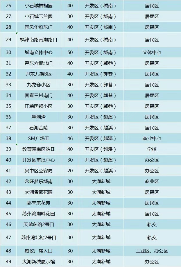 吳中區(qū)自行車辦卡點主要包括: